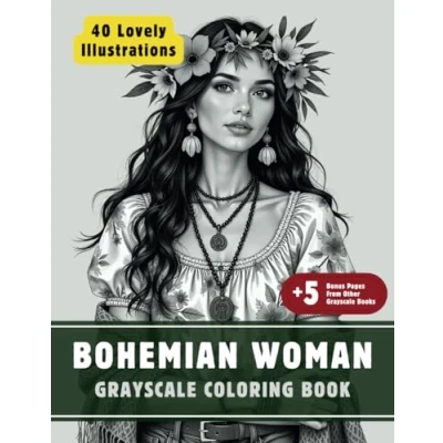 Bohemian Woman Coloring Book: Grayscale Book for Adults with 40 High Quality and Unique Illustrations Relaxation Stress Relief. (Grayscale Books Adults)