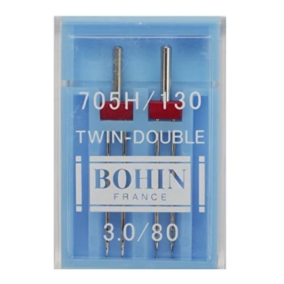 Bohin Machine Needles Twin x2 3/80, Metal, Silver, 0.1 x 4 cm