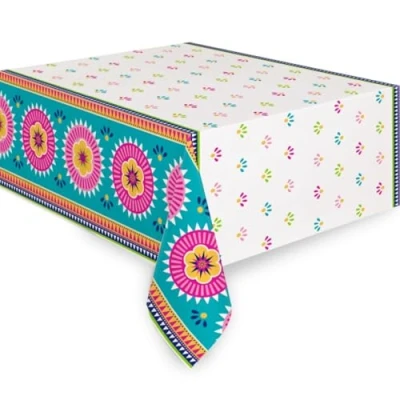 Boho Fiesta Rectangular Plastic Table Cover (137cm x 213cm) Vibrant & Colorful Design Party Essential Perfect for Outdoor, Indoor, Birthday, Wedding 1 Pc