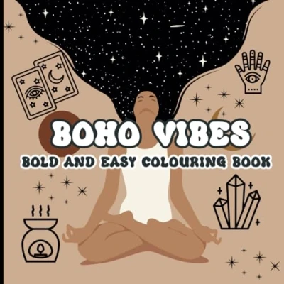 Boho Vibes Bold and Easy Colouring book for Adults Teens