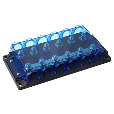 Product: ANM bolt-on fuse holder, high current fuse box, can be used for up to 6 fuses. Applicable Fuse: ANM 25-500A; Fuse Type: DC; Voltage: 32 Volts Function: protection against short circuit or overload Application: ANM car fuse holders are widely used in transportation, automobile repair, GPS positioning, LED turn signals, motor start, power switch, industrial production. Package Included: 1 x 6-Way Mega Fuse Holder