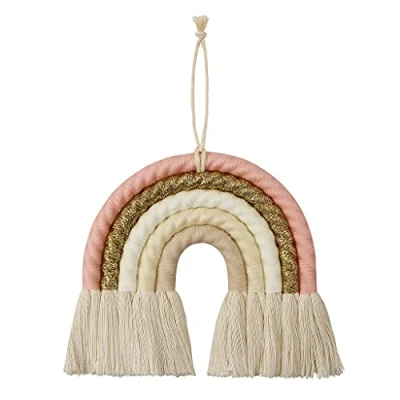 Boji Neutral Rainbow Wall Hanging, Nordic Woven Macrame Boho Decor for Room Home Nursery Baby Pink Figured Cloth