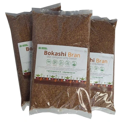 General description Our excellent Bokashi Bran is enriched with beneficial effective microbes, making it perfect for use in a Bokashi Bin, as a soil improver, or as a compost accelerator. This brown Bokashi Bran is also a great addition to chicken feed to improve digestion and can neutralize odors in wormeries. It has a distinctive sweet smell, similar to that of hops, providing a pleasurable experience during use. When kept unopened and out of sunlight, it can maintain its excellent condition for up to 2 years without deterioration.
