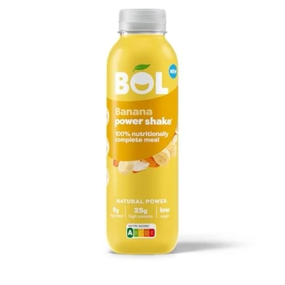BOL Banana Power Shake Ready to Drink Nutritionally Complete Meal (300Kcal) 25g High Protein Low Sugar, Fibre (9g), Plant Based, Calorie Replacement (410ml x 1 Bottles)