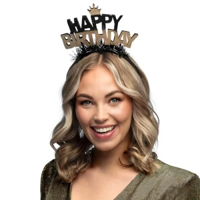 You will receive a gold-black headband from the brand. Boland The tiara is decorated with the lettering Happy Birthday and tinsel threads The headpiece comes in one size Put this hair accessory on your head on your birthday Combined with other accessories (sold separately) from Boland, your day of honour will be a very special experience, Manufacturer: Boland