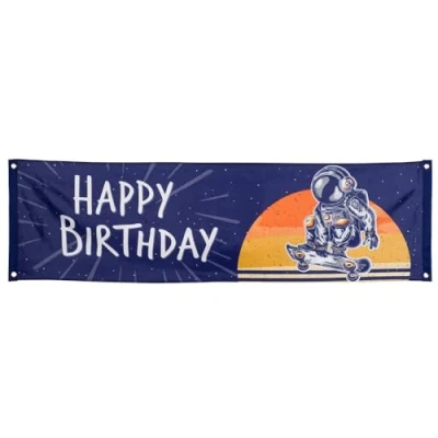 Boland 50521 Happy Birthday Banner Space Polyester Decoration Theme Party Hanging