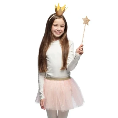 You will receive a multi-piece costume set from the brand. Boland Turn your child into a magical fairy with these accessories Included are the headband with crown, a short tulle skirt and the beautiful magic wand with star The accessories are designed in the glamorous colours pink and gold Combine this set with a matching costume from Boland (sold separately) to stand out at the themed party, Manufacturer: Boland