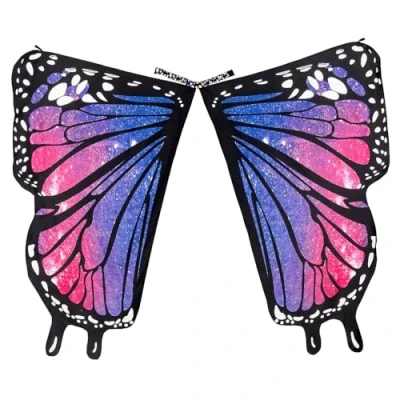 You will receive beautiful butterfly wings for adults from Boland with a total size of approx. 160 x 140 cm They are designed with a beautiful print in pink, white, black and purple The lightweight fabric makes the wings a pleasant accessory that allows you to float over the dance floor Wear the wings around your neck and tuck the loops at the wing end around one finger of each hand The cape from Boland brightens up any outfit and will make you an eye-catcher at carnival or costume party, Manufacturer: Boland