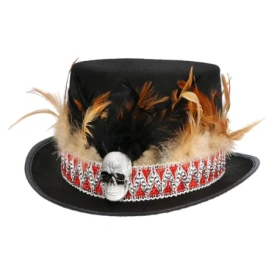 VOODOO HAT ACCESSORY – Striking black voodoo hat featuring feathers, faux fur trim and a bold skull emblem, ideal for creating an authentic witch doctor or shaman look. PERFECT FOR HALLOWEEN – A standout fancy dress accessory that adds instant character to Halloween parties, fright nights, haunted events and spooky celebrations. VERSATILE COSTUME PIECE – Complements a wide range of outfits including voodoo priest, tribal shaman, zombie witch doctor, carnival performer and festival characters. COMFORTABLE TO WEAR – Lightweight design ensures easy, comfortable wear for long events, whether you're out trick-or-treating, dancing or attending themed parties. READY FOR ANY EVENT – Ideal for Halloween, carnival, costume parties, theatre performances, cosplay and themed photo shoots. Pairs perfectly with face paint and accessories., Manufacturer: Boland