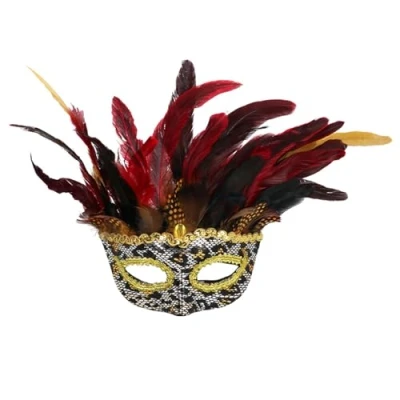 This is a Voodoo Marasa eye mask from Boland The beautiful mask is designed in brown tones There are many feathers attached to the top for decoration This eye mask has a cord attached so you can attach it to the head With this accessory you will be a real eye-catcher at any carnival, Halloween or theme party, Manufacturer: Boland