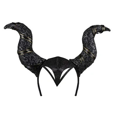This is a headband with attached horns and V-shaped headpiece from Boland The beautiful headband is in black and is decorated with silver and gold details Horns and a V-shaped head cover are attached to the headband For all fans of the dark fairytale world and evil witchs: the Dark Fairy Demon headband is reminiscent of the dark fairy maleficant and will enchant any outfit with a dark magic International products have separate terms, are sold from abroad and may differ from local products, including fit, age ratings, and language of product, labeling or instructions., Manufacturer: Boland