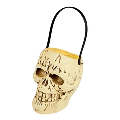 Table decoration. Size: approx. 17 x 15 cm. Skull Bucket For Halloween or other occasions. Colour: beige., Manufacturer: Boland