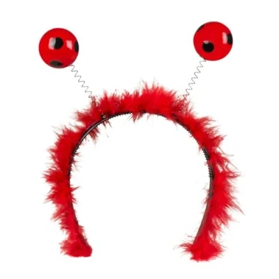 With this great headband from Boland you can complete your ladybird costume perfectly The black headband for adults is dressed in red plush Red feathers with balls are attached to the headband that represent the feelers The balls are red and have black dots A ladybird to a carnival or themed party always goes and is the classic among costumes, Manufacturer: Boland