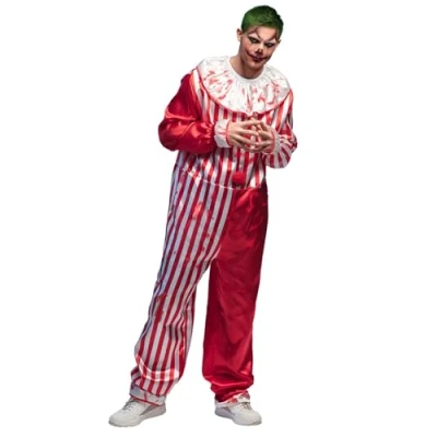 You will receive a killer clown costume from the brand Boland The jumpsuit comes in size 58/60 The red and white clown costume with blood splashes will make you stand out at the theme party The fancy dress costume is ideal for cold days, as you can wear a warm jacket underneath Combine this costume with matching accessories (not included) from Boland to complete the Halloween fancy dress, Manufacturer: Boland