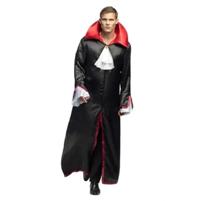You will receive the "Vampire Carlyle" costume from the brand. Boland You will receive a long, black coat in size XL The cape has long sleeves and is decorated with a red collar and a white jabot The costume is ideal for cold fancy dress days, as you can comfortably wear your warm clothes underneath With this Halloween costume from Boland you are equipped for fancy dress or a creepy theme party, Manufacturer: Boland