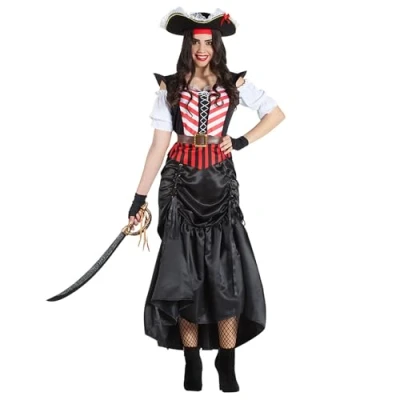 You will receive a pirate costume from the brand. Boland The costume set for women comes in size XL The set includes a headband and the long dress You will also receive a pair of gloves and the matching belt This costume is ideal for fancy dress, Halloween or theme parties, Manufacturer: Boland