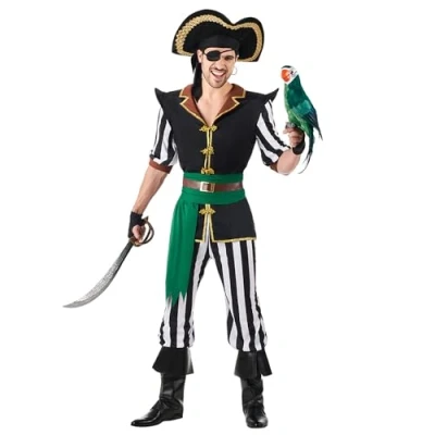 You will receive a pirate costume from the brand. Boland The costume set for men comes in size XXL The set includes a bandana, eye patch, shirt and sash You will also receive the striped trousers, gloves and two boot warmers This costume is ideal for fancy dress, Halloween or theme parties, Manufacturer: Boland