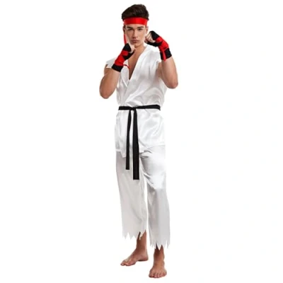 You will receive a multi-piece ninja men's costume from the brand Boland It comes in size XL The set includes the headband, jacket, a pair of gloves, comfortable trousers, a belt and two hand wraps The colours white, red and black dominate this costume made of shiny fabric This costume is ideal for fancy dress, Halloween or theme parties, Manufacturer: Boland