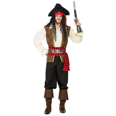 You will receive a pirate costume from the brand. Boland The costume set for men comes in size XL The set includes the hat, bandana, shirt and vest You will also receive a sash, belt, trousers and two boot warmers This costume is ideal for fancy dress, Halloween or theme parties, Manufacturer: Boland