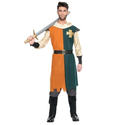 You will receive a 4-piece men's costume from the brand. Boland It comes in size XL The green-orange costume set consists of the knee-length tunic with golden sleeves, two boot warmers and a black belt The cross at chest height and the extravagant collar provide a medieval look This costume is ideal for fancy dress or theme parties, Manufacturer: Boland
