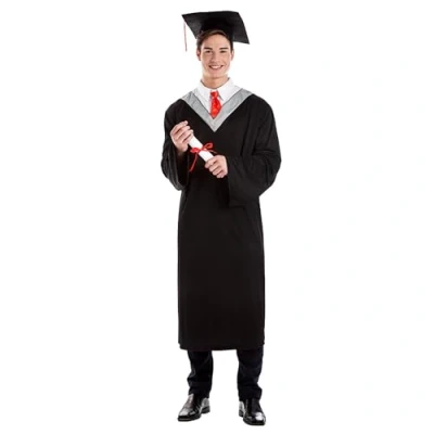 You will receive the graduate costume from the brand. Boland The adult costume set comes in size S Included in the set are the doctoral hat and a long robe with collar and tie The garments are mainly black to look authentic This costume is ideal for fancy dress, Halloween or theme parties, Manufacturer: Boland