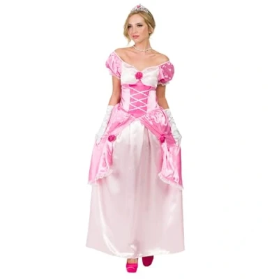 You will receive a multi-piece women's costume from the brand Boland It comes in size XL The set includes the glamorous long dress and a pair of white gloves The shimmering fabric, the colours white, pink and pink as well as borders and roses provide a convincing look as a fairy tale princess The extravagant costume is ideal for fancy dress, Halloween or theme parties, Manufacturer: Boland