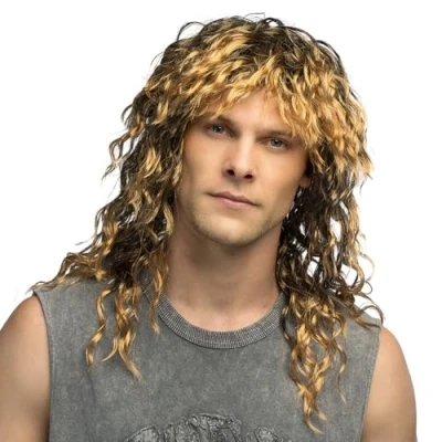 You will receive the "Keith" curly wig from the brand. Boland The headpiece comes in one size for adults Wavy, long synthetic hair in blonde and dark brown as well as the cheeky fringe ensure a casual hairstyle It is suitable for fancy dress, Halloween, a festival or the next 80s theme party Combine the wig with a matching hippie costume or an 80s outfit from Boland (sold separately) to create a unique fancy dress