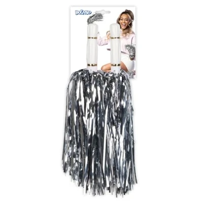 You will receive 1 pair of pompoms from the brand. Boland The costume accessory made of metallic foil is available in shiny silver The pompoms are each equipped with a white handle The ideal accessory to add the finishing touch to a sporty outfit or cheerleader costume Pair the pom poms with a coordinating trim (sold separately) from Boland to complete the party outfit, Manufacturer: Boland