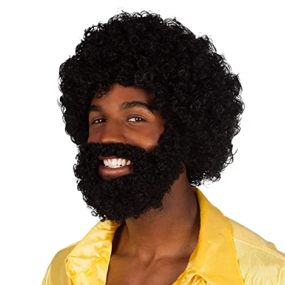 Afro wig set. For adults. Colour: black. Set consists of wig and beard. Versatile use., Manufacturer: Boland