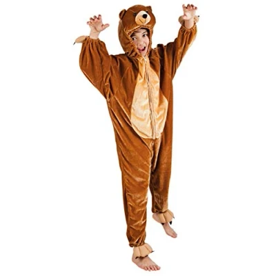 The children's bear costume consists of a full body jumpsuit made of plush. It has a zip on the front, is equipped with bear paws on the arm and leg ends and has a hood with a cute bear face. The costume is suitable for a maximum height of 1.40 m. It comes in brown colour. This costume is ideal for various costume events such as carnival, fancy dress or theme parties., Manufacturer: Boland