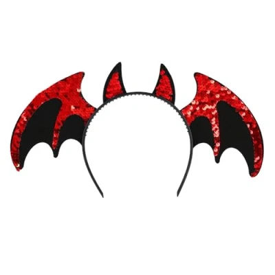 You will receive a shiny tiara from the brand Boland The headband is decorated with devil horns and bat wings These are decorated with shiny sequins in the colour red An eye-catching accessory for your outfit as a vampire lady, devil or bat Combine this tiara with a matching costume (not included) from Boland to complete the Halloween fancy dress, Manufacturer: Boland