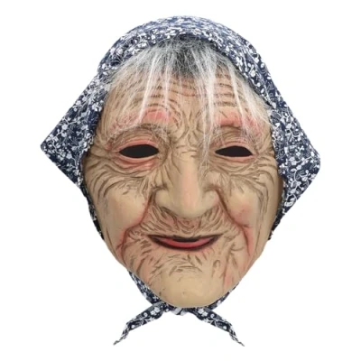 You will receive a carnival mask made of latex from the brand. Boland Pull the mask over your head to transform into an old woman in no time The head mask looks like a grandma with a wrinkled face wearing a flower scarf as a headpiece This mask is also suitable as a fun gift for birthdays or starting retirement Combine the latex mask from Boland with a matching costume (not included) to create a great party outfit, Manufacturer: Boland