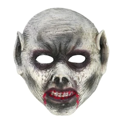 You will receive the "Vampire Monster" face mask from the brand. Boland Add a particularly gloomy touch to your Halloween costume with this detailed foam vampire mask The fancy dress mask shows pale, worn skin, blood-smeared fangs and a fearsome facial expressions - a real eye-catcher at any scary party Thanks to the practical elastic band, the mask made of foam material sits well on the head - generous cut-outs on the eyes ensure the necessary visibility They make an impressive statement at any Halloween party, carnival or at themed events around horror and scary, Manufacturer: Boland