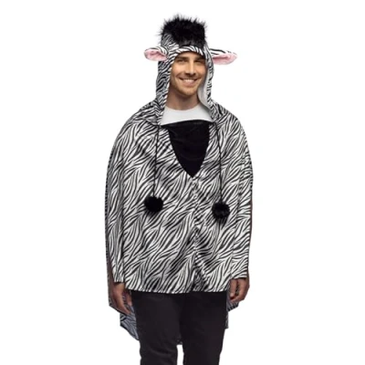 You will receive the comfortable black and white "Zebra Deluxe" poncho from Boland Cape fits most adults and is comfortable to wear This hooded cape with cute zebra ears creates a unique and fun look Just throw them over your everyday clothes and you have an impromptu costume for carnival or an animal themed party! Pair the cape with an Boland mask or wig (sold separately) to create an exciting party outfit, Manufacturer: Boland