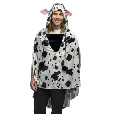 You will receive the comfortable black and white poncho "Cow Deluxe" from the brand Boland Cape fits most adults and is comfortable to wear This hooded cape with cute cow ears creates an original look Just throw them over your everyday clothes and you have an impromptu costume for carnival or an animal themed party! Pair the cape with an Boland mask or wig (sold separately) to create an exciting party outfit, Manufacturer: Boland