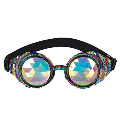 Bring some colour into play with these party glasses from Boland The extravagant glasses are decorated with shiny sequins and have holographic lenses The extravagant design makes this accessory a real eye-catcher. The glasses are reminiscent of a welding goggles from the Steampunk period The wide, black elastic strap ensures a secure hold on the head Combine the Boland Mirage party glasses with matching accessories (not included) to complete your party outfit, Manufacturer: Boland