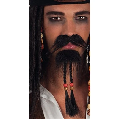 PIRATE MOUSTACHE AND BEARD SET – Black stick-on facial hair set with a curved moustache and braided beard, complete with decorative beads for an authentic pirate look REALISTIC PIRATE STYLE – Instantly transforms your appearance, perfect for creating a rugged seafaring character for fancy dress events or performances EASY TO APPLY – Simple self-adhesive backing makes it quick to attach and remove, ensuring a secure fit throughout the party or event ONE SIZE FITS MOST – Designed as a unisex accessory for adults, making it a versatile choice for men and women’s pirate costumes PERFECT FOR COSTUME EVENTS – Ideal for Halloween, pirate parties, cosplay, theatre productions, or themed celebrations on the seven seas, Manufacturer: Boland
