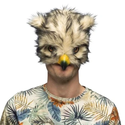 Lifelike facial features of this carnival mask from Boland provide an authentic accessory for your owl costume The half mask made of plush fabric comes in one size for adults Beige/black mottled fur, brown googly eyes and the yellow beak make this mask a real eye-catcher Slip into the role of a magical fairy tale owl or owl at the theme party with this face mask The stretchy elastic band ensures a good hold on the head - ideal half mask for various fancy dress costumes or an animal cosplay event, Manufacturer: Boland