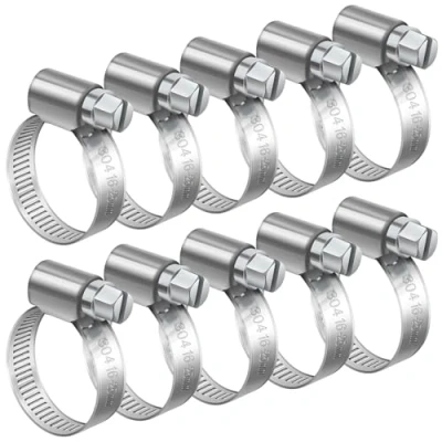 Bolatus 16 25mm Hose Clips Adjustable, 10 Pcs Clamps 304 Stainless Steel Worm Drive for Securing Connections Home Gas Pipe Water and Fuel Line Flexible Tube