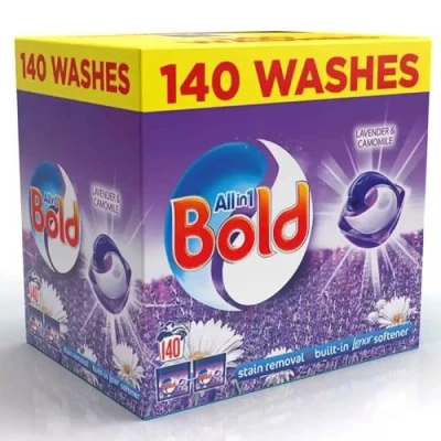 Bold All in 1 PODS Washing Liquid Laundry Detergent Capsules, 140 Washes, 3.72 Kg Power Pack, Stain Remover For Clothes, Lavender and Camomile Scent