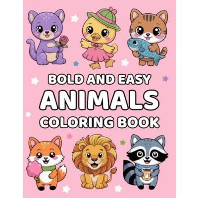 Bold and Easy animals Coloring Book: Adorable images of cartoon having fun for Adults, Teens Kids to color relaxation stress relief
