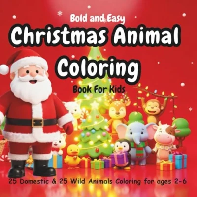 Bold and Easy Christmas Animal Coloring Book for Kids: 25 Domestic Animals plus Wild Educational Toddlers kids 2 6