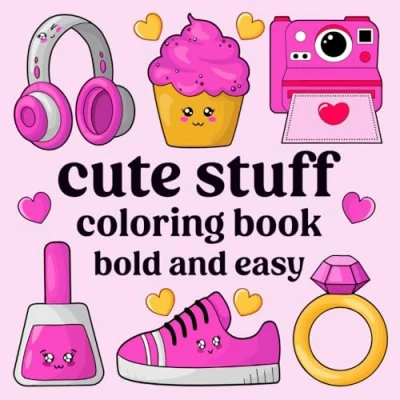 Bold and Easy Coloring Book Cute Stuff: Simple, Big Designs for Adults Relaxation Kids Fun: Stuff