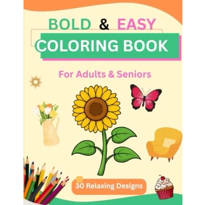 Bold and Easy Coloring Book for Adults & Seniors: Simple Relaxing Designs Stress Relief