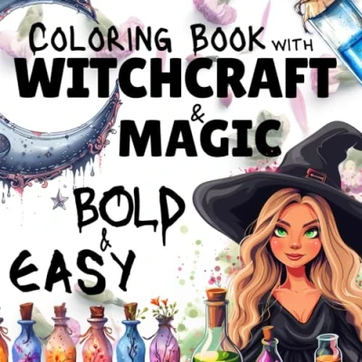 Bold and Easy Coloring Book with Witchcraft & Magic: Big, Simple Large Illustrations for Adults Crystals, Cards, Potions, Mystical Objects More.