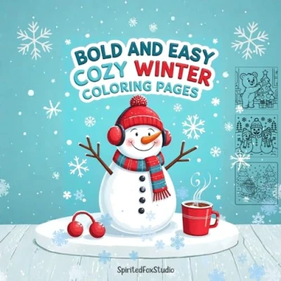 Bold and Easy Cozy Winter coloring Pages (Cozy by SpiritedFoxStudio)