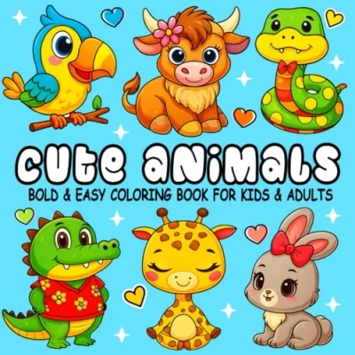 Bold and Easy Cute Animals Coloring Book for Kids Adults: Simple Large Print Animal Pages to Enjoy Stress Relief. (Bold Books)