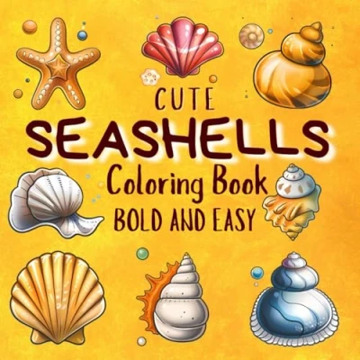 Bold and Easy Cute Seashells Coloring Book: Big, Simple Large Pages for Adults, Seniors, Kids Beginners. Illustrations Stress Relief Positive Energy All.
