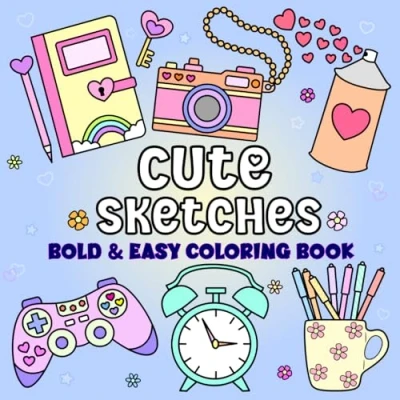 Bold and Easy Cute Sketches Coloring Book for Adults Kids: 50 Simple Big Designs with Thick Lines Kids, Beginners (Bold & Books)