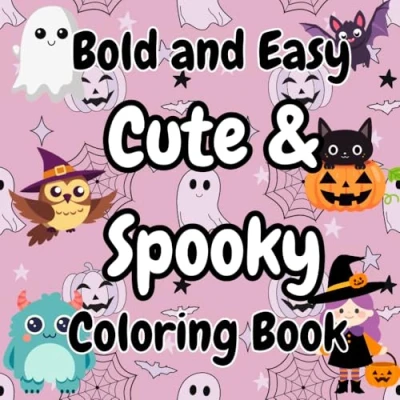 Bold and Easy Cute & Spooky Coloring Book: Hygge Inspired Designs for Adults Teens. Simple, Illustrations with Thick Lines (Bold Coloring)